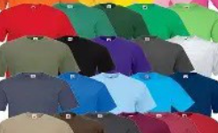 A whole range of colours and styles of t shirt in child and adult sizes. The front, back and sleeve can all be branded here.